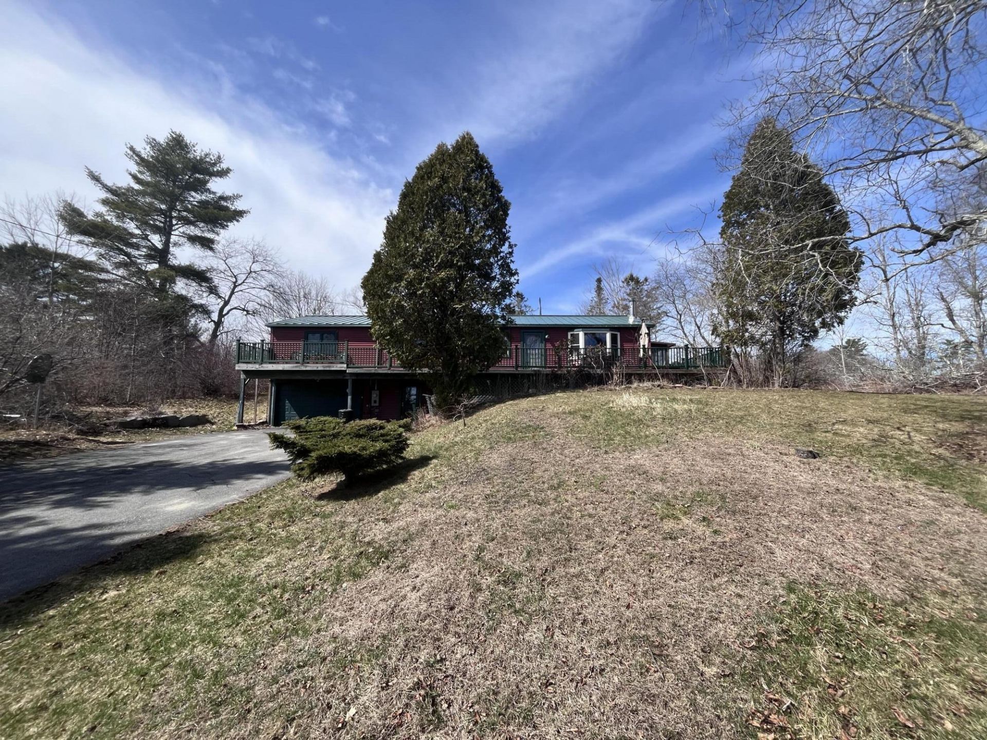 Nestled at the back of a beautifully landscaped 2 acre lot, this inviting 3 bedroom 1 bathroom ranch style home offers privacy, space, and comfort. This home is thoughtfully positioned to maximize the peaceful surroundings, with a long paved driveway leading to an attached garage for added convenience. Inside, the home features a practical and cozy layout, perfect for everyday living. The living area flows into the eat in kitchen, while the three bedrooms offer flexibility for family, guests, or a home office. The full bathroom is centrally located and accessible directly from the master bedroom. Off the kitchen is a glassed in porch that connects to a wrap around deck off the front of the home. This home is located 30 minutes to Bangor & Belfast, 1 hour to Augusta, and 2 hours to Portland. Home is handicap accessible with direct access via ramp to master bedroom.